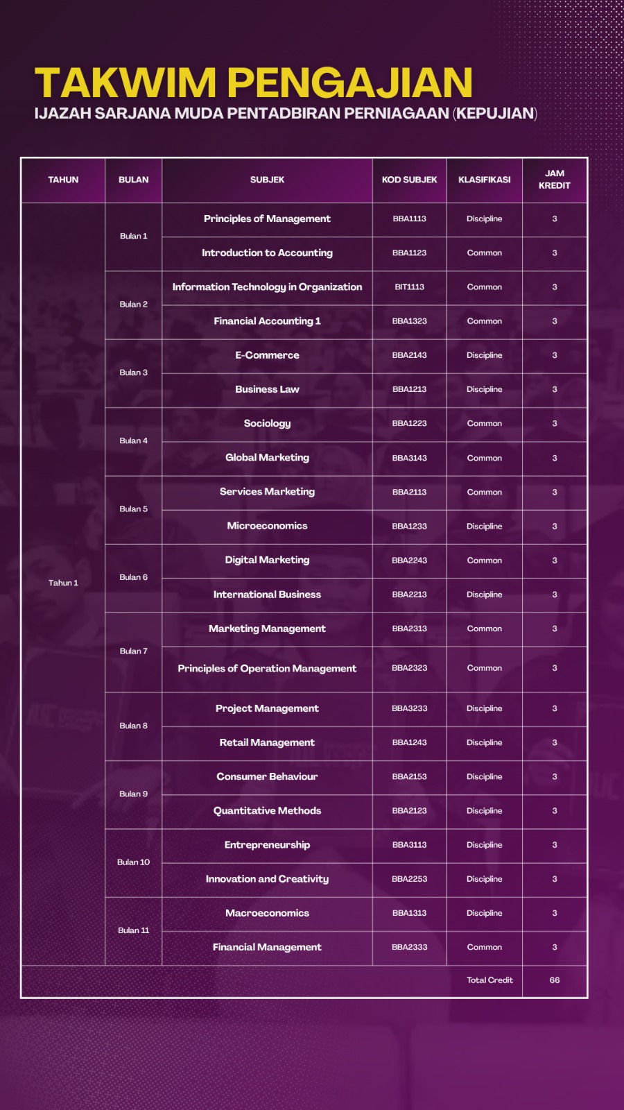 Tajaan Biasiswa Degree (BBA) Bachelor of Business Administration (Honours) (MQA/PA17221)